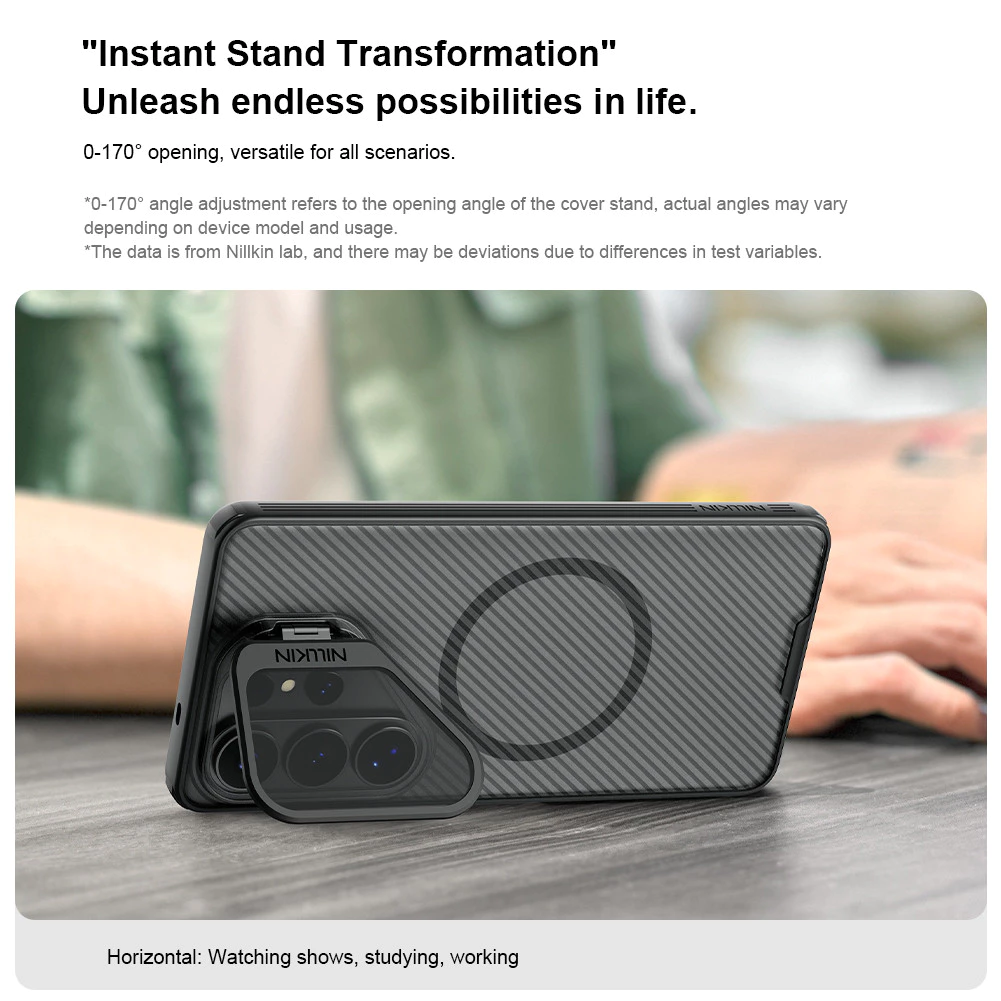CamShield Prop Magnetic Case continues the fashionable and classic twill design. Flip-style lens protection cover with dazzling CD pattern, also it’s a mobile phone holder; A built-in powerful magnet makes you enjoy the experience from MagSafe; Adopt dual materials for all-inclusive protection; Combined with anti-drop airbags on four corners, featuring anti shock and anti drop. Apply tactile oil on the surface, which is skin friendly and prevents fingerprint oil stains; Add anti-slip strips on sides, making it more stable and comfortable to hold.