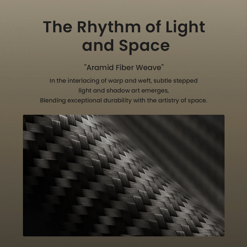 The aramid fiber weave offers durability while presenting an artistic play of light and shadow. Creative aluminum alloy accents add depth and layers to the design. Combined with TPU hybrid molding, it enhances protection and optimizes the tactile experience. Upgraded MagSafe magnetic attachment ensures greater convenience and stability.