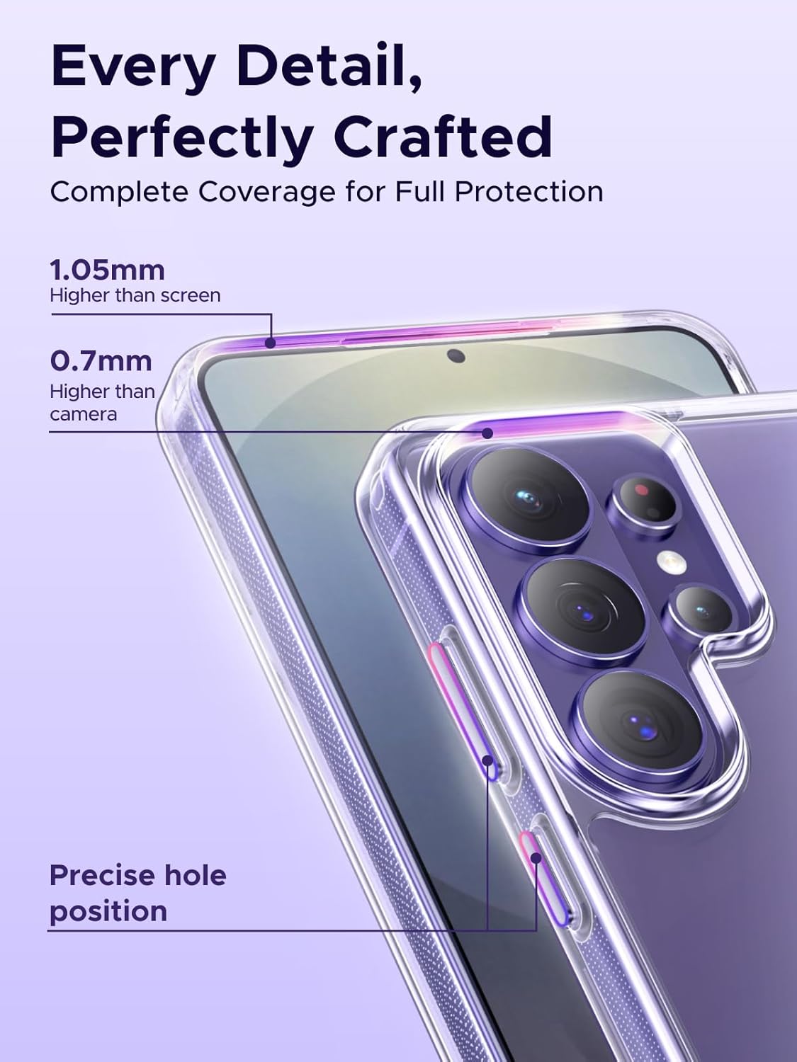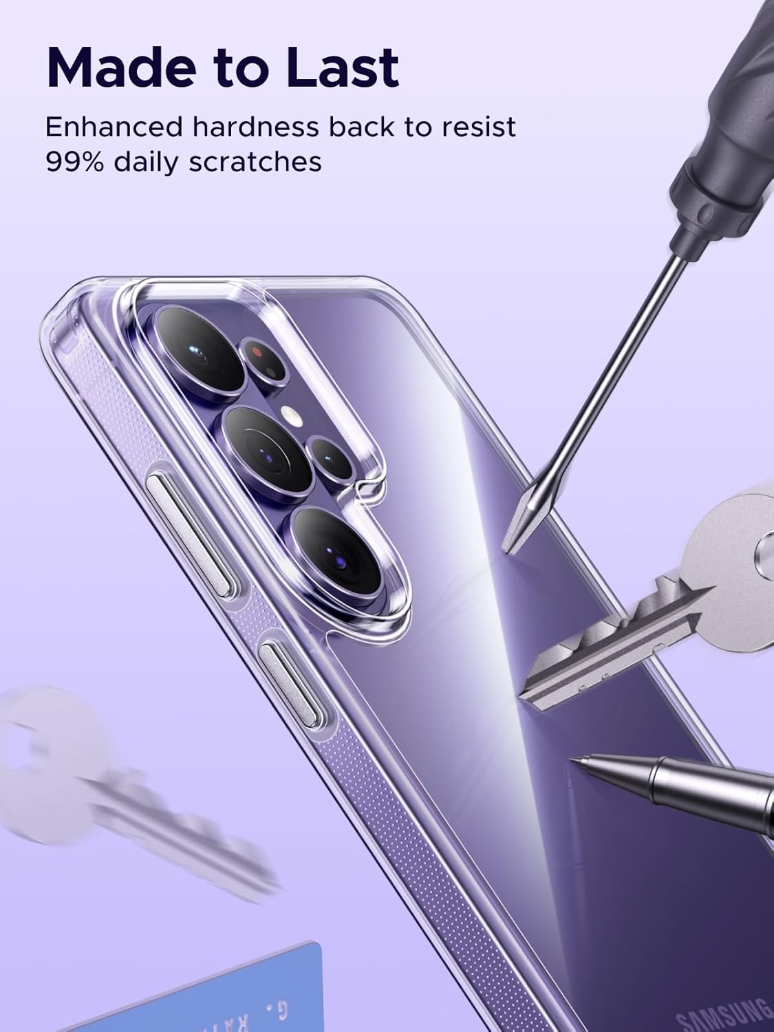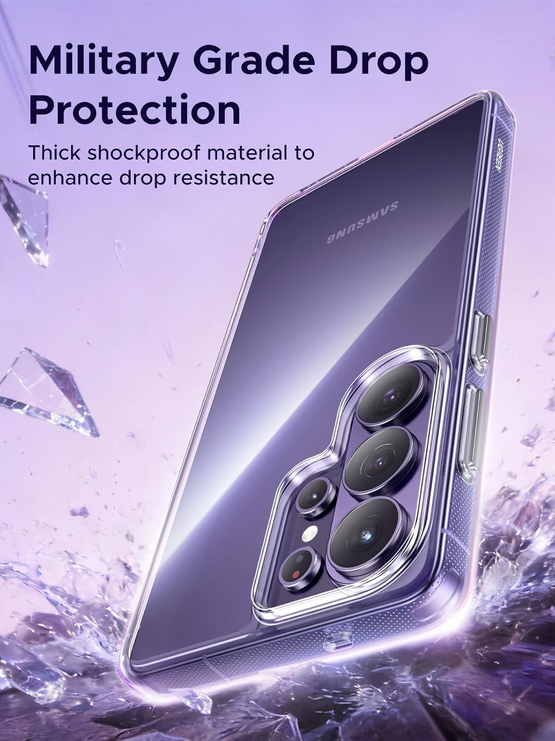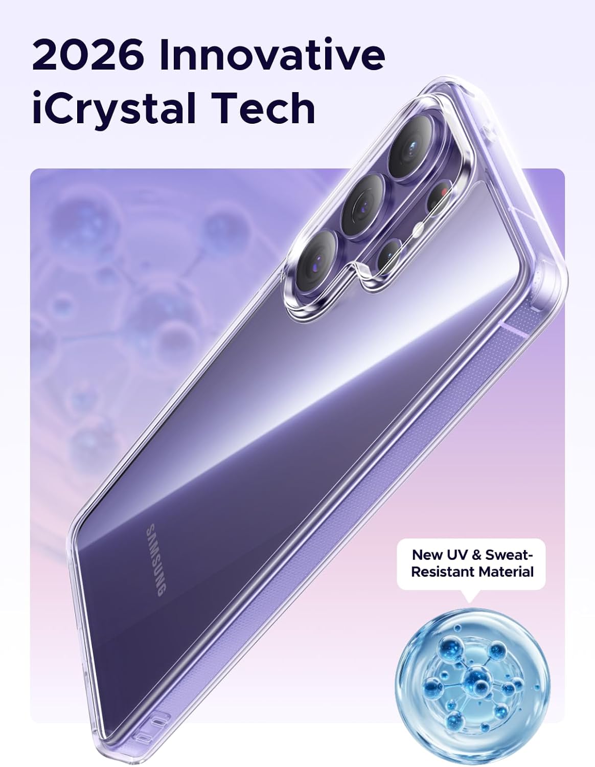- 【Crystal Clear Design】Specifically designed Compatible with the Galaxy S26 Ultra, that Enhanced hardness back to resist 99% daily scratches. New UV & Sweat-Resistant Material, It perfectly showcases your Galaxy’s original color.