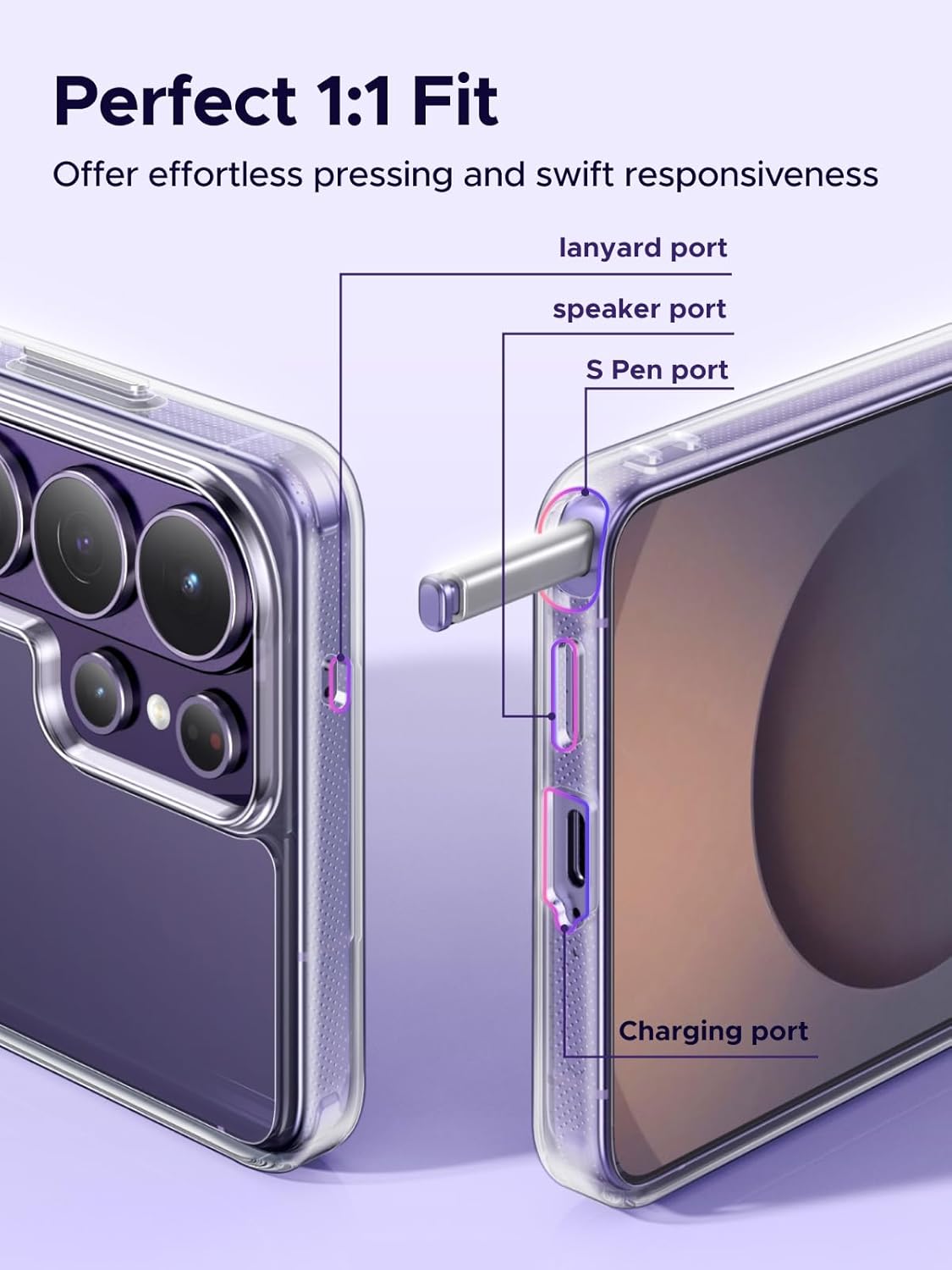 - 【Precise Cutouts】The precise cutouts of the case perfectly fit the lanyard port,speaker port,S Pen port,Charging port, and charging port of your Galaxy S26U, allowing for more sensitive adjustments.